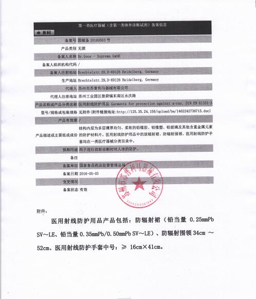 蘇州市蘇普利馬器械有限公司是專業(yè)從事醫(yī)用X射線防護(hù)系列用品、裝置、代理德國Dr.Goos-Suprema Gmbh.顧斯博士-蘇普利馬有限公司生產(chǎn)的原裝進(jìn)口鉛衣及醫(yī)用觀片燈的生產(chǎn)銷售企業(yè).生產(chǎn)的X射線防護(hù)圍裙均來自美國SHIELDING公司的最新型超薄型防護(hù)材料,,具有防護(hù)性能可靠、穿戴舒適、輕便柔軟、操作自如等諸多優(yōu)點(diǎn).產(chǎn)品均通過相關(guān)X射線檢測(cè)機(jī)構(gòu)的檢測(cè),達(dá)到產(chǎn)品標(biāo)準(zhǔn)的要求.X射線醫(yī)用膠片觀察燈。是采用全LFD燈光技術(shù)。具有重量輕,光源均勻,亮度高,無頻閃,不變型,使用壽命長(zhǎng)等特點(diǎn)。均取得了生產(chǎn)許可及醫(yī)查看更多>>